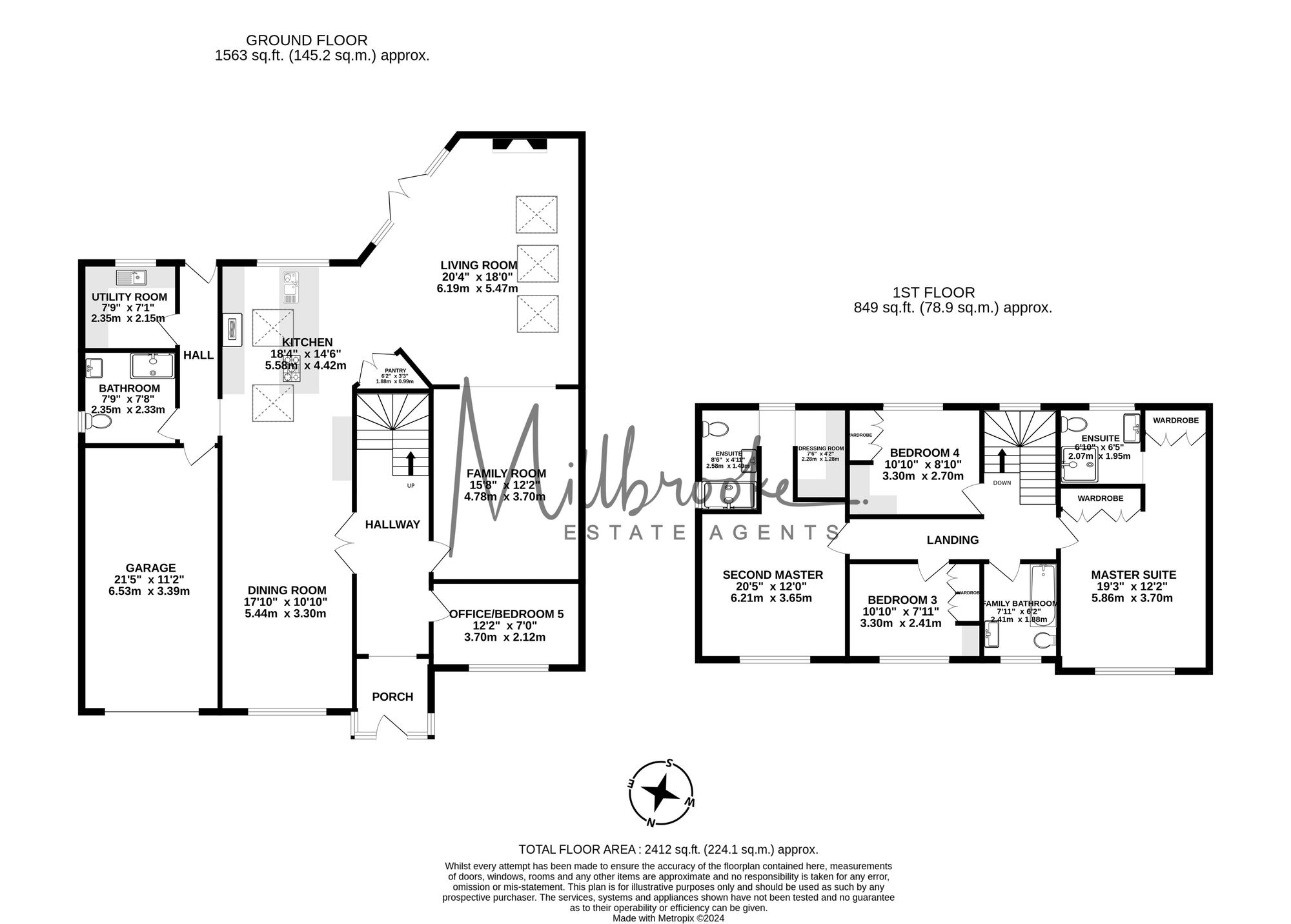 Venturing to the first floor you will find a further abundance of space and style with four large double bedrooms all with fitted storage units. Two of which are impressive master suites showcasing stylish, high end en-suites and walk-in wardrobes. The first floor accommodation also includes a brand new luxurious family bathroom. There is access to the loft space from the landing, which is fully boarded to provide useful storage and also offers the potential for conversion.