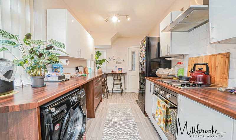 Comprising an entrance porch leading to a hallway, a spacious and bright lounge to the front elevation, a second reception room to the rear with a door to the garden and a fantastic kitchen/breakfast room with a door to the side elevation. On the first floor are two great-sized double bedrooms, a third single bedroom and a fantastic four-piece bathroom suite. Externally, the property has driveway parking and a low-maintenance front garden. Gated access to the private rear garden, which is not overlooked.