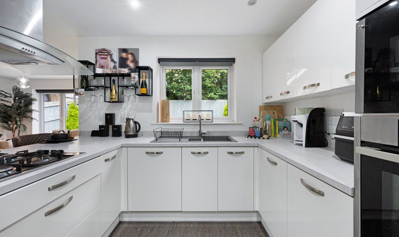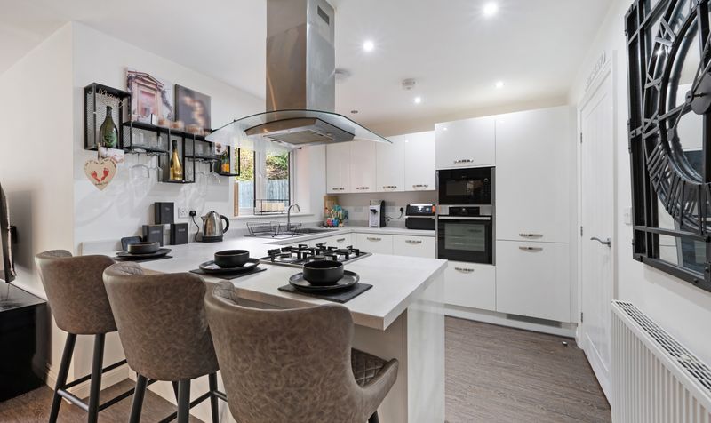 Comprising an entrance hall with under-stair storage, a single garage, a vast and bright kitchen/family room to the rear opening onto the low-maintenance, landscaped rear garden, a utility room, a guest W/C, and a dining room/second reception to the front elevation. To the first floor is a landing and airing cupboard, master bedroom with en-suite, second double bedroom, third double bedroom, a spacious fourth bedroom/study, and a contemporary three-piece family bathroom with a shower over the bath.