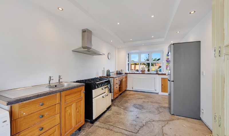 The spacious lounge runs the length of the property and boasts views of the garden providing access via French doors, whilst the welcoming kitchen also offers uninterrupted views of the garden and a charming haven for dining, cooking and entertaining.