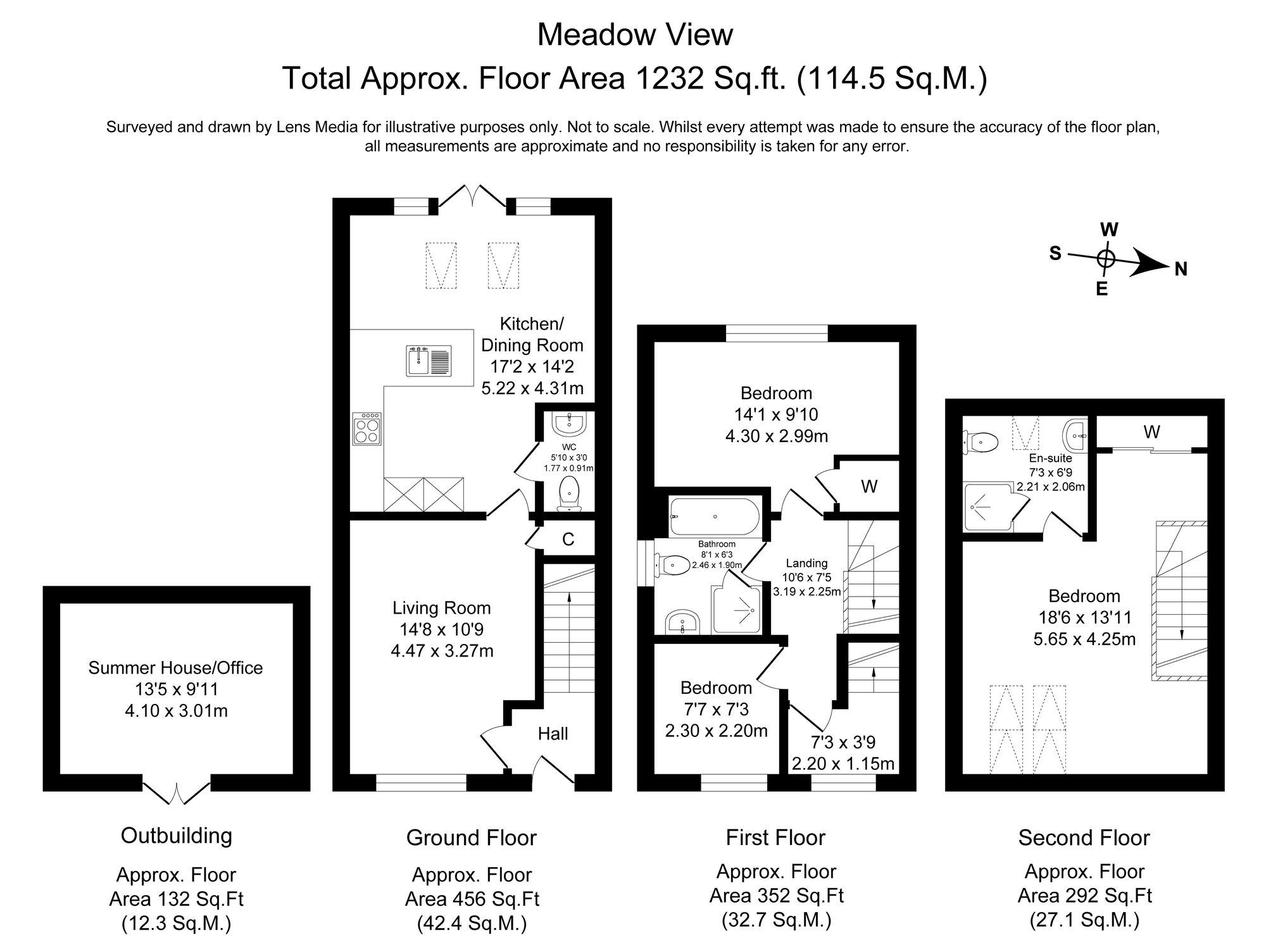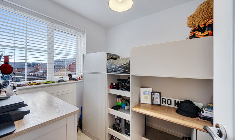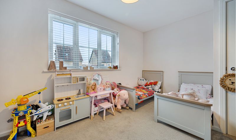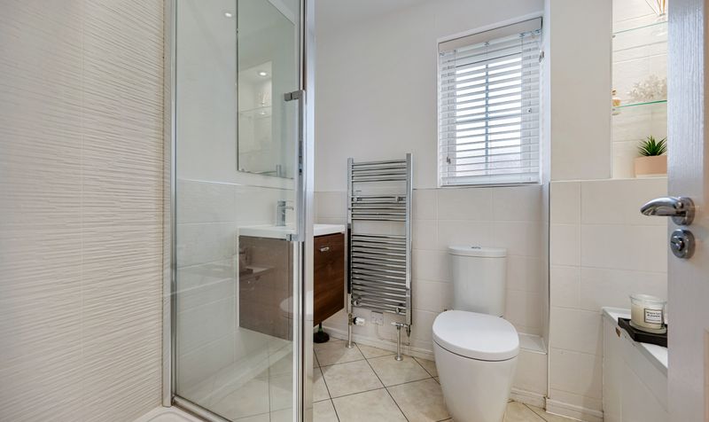 The first floor hosts two well-proportioned bedrooms and a stylish, modern, family bathroom. Occupying the entire top floor is a standout principal bedroom suite, offering a real sense of space and privacy. This impressive room features characterful sloping ceilings, roof windows, fitted mirrored wardrobes and a stylish en-suite shower room, creating a calm and private retreat away from the main living areas.
