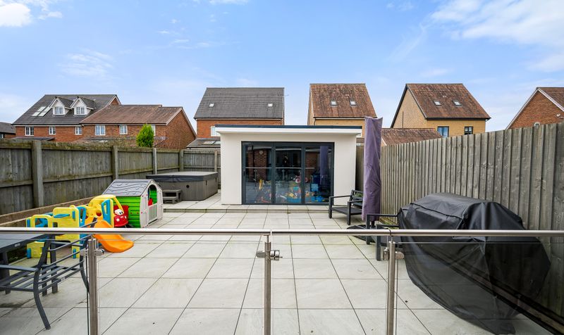 Externally, the property sits attractively within a pleasant street scene, benefiting from a double driveway providing off-road parking for two vehicles. To the rear there is a wonderful low maintenance, westerly facing rear garden with tiled patio, bespoke glass balustrade and enclosed fencing. The property also benefits from a versatile summer house, offering further space for a calm and private retreat away from the main living areas. The fully enclosed garden is ideal for alfresco dining, play or relaxing throughout the day with the additional attraction of a hot tub included in the sale.