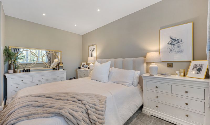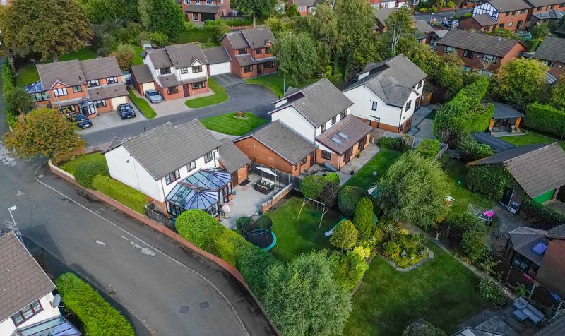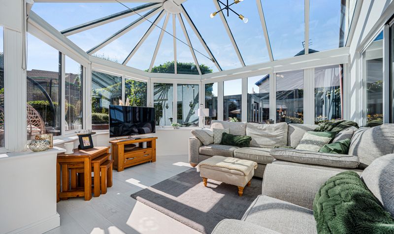 Externally to the front elevation, the property has a laid to lawn garden and a large driveway with parking for multiple vehicles. There is also a garage to the side elevation with an EV Charger installed. To the rear of the property you will find a fabulous combination of South-West facing lawns and patio areas. This immaculate and expansive garden is flooded with sunlight throughout the day and is the perfect space to enjoy all year round with ample gardens for entertainment, relaxing and al fresco dining during the summer months.