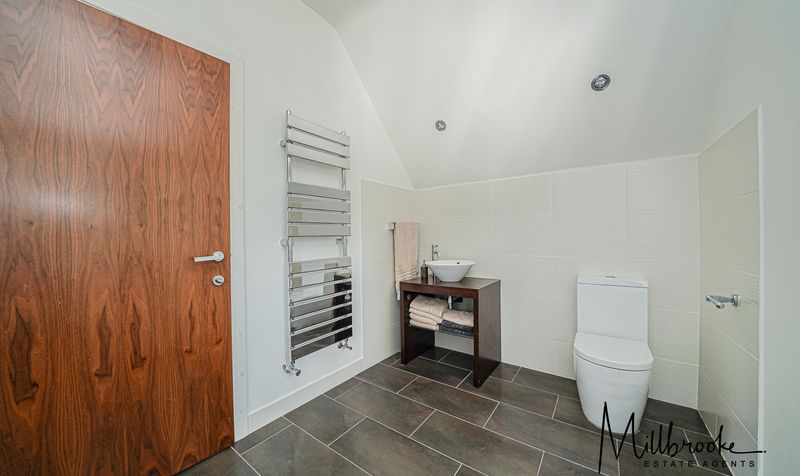 Externally, the property has a large paved patio to the rear elevation with views over the brook and a garden room with a bar area, the perfect space to entertain or enjoy alfresco dining. To the front elevation is a sunken firepit area and an elevated deck to soak up the afternoon sun. Across the property, you will find a gated driveway and carport offering perfect parking for multiple vehicles. Further to the main residence, you have a separate two-story annexe building which incorporates a large open-plan lounge/dining area and a stylish kitchen. On the first floor is a substantial bedroom and a large shower bathroom. To the rear of the annexe and accessible via the driveway is a large store cupboard.